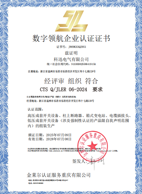 Is institiúid deimhniúcháin tríú páirtí neamhspleách í Seirbhís Deimhniúcháin Gunler Chongqing Co., Ltd. Tá sé deimhnithe ag an Riarachán Deimhniúcháin agus Creidiúnaithe Náisiúnta (CNCA), agus tá sé deimhnithe ag an monarcha do go leor cuideachtaí leictreacha. Is institiúid deimhniúcháin tríú páirtí aitheanta agus údarásach é sa tSín. Chuaigh Kexun i dteagmháil le Gunler Company sa chéad leath de 2025. Mar gheall ar an ngnó gnóthach, tá sé i gceist ag Gunler Company teacht chuig Kexun le hathbhreithniú a dhéanamh ar an lá speisialta den 1 Iúil. Tar éis iniúchadh monarchan seachtaine, bhronn Iniúchóirí Gunler cúig cinn deimhnithe, lena n -áirítear ceardlann dhigiteach, monarchan Píolótach Digiteach, Fiontraíocht Dhigiteach, Factory Factory agus Taispeántas Taispeántais Intellíogair agus Taispeántas Taispeántais. Cuimsíonn an scóip deimhniúcháin lascthrealamh ardvoltais, scoradáin iar-chiorcaid, fostáisiúin de chineál bosca, plocóidí cábla agus lascthrealamh ísealvoltais.